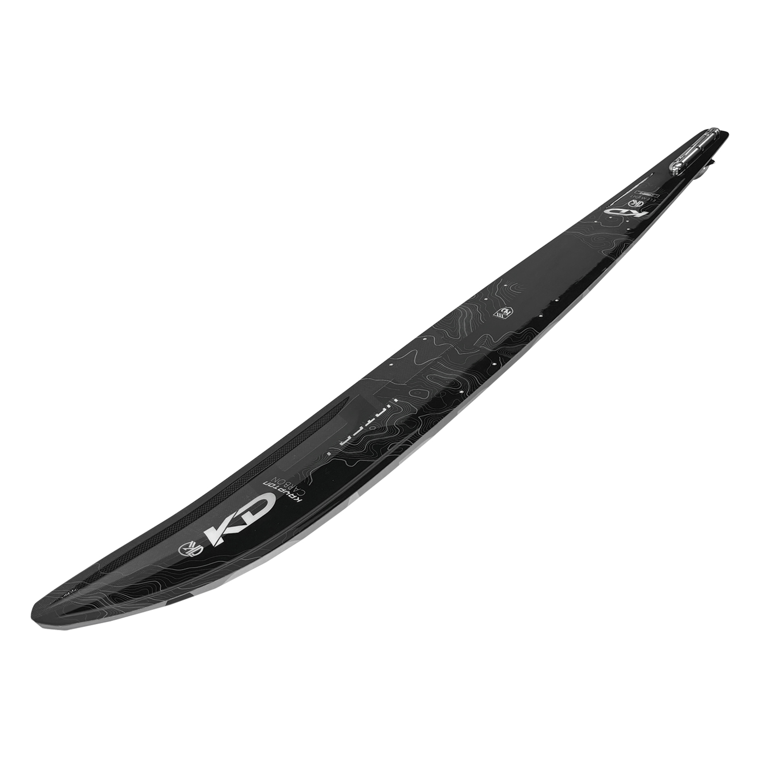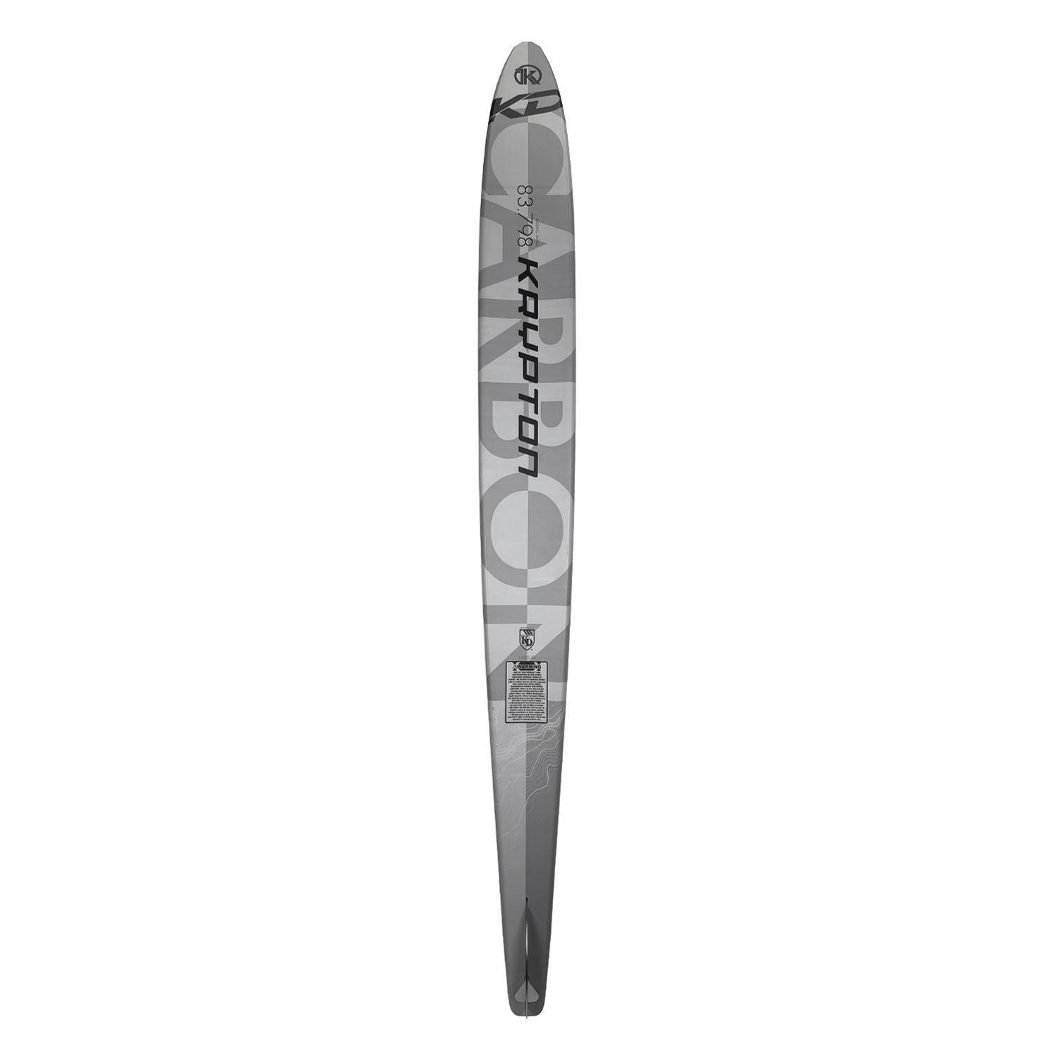 The Krypton Carbon is the middle of the range model that features the best of all three skis rolled into a price point package that’s nearly impossible to beat! With its distinctive RCD top deck allowing a full Carbon and graphite top sheet, the Krypton Carbon delivers all the torsional rigidly and explosiveness of the Fusion, with specific fiberglass zones that allow skiers of all abilities to experience tighter radius turns and huge cross course speeds without the need for a perfect technique. The Krypton Carbon uses a softer polyurethane foam core featured in the base model, its foam cells are denser, allowing the ski to ride deeper and require less effort to tighten up the skis natural turn radius. The blend of these two features makes the Carbon the most popular of the entire Krypton line-up.